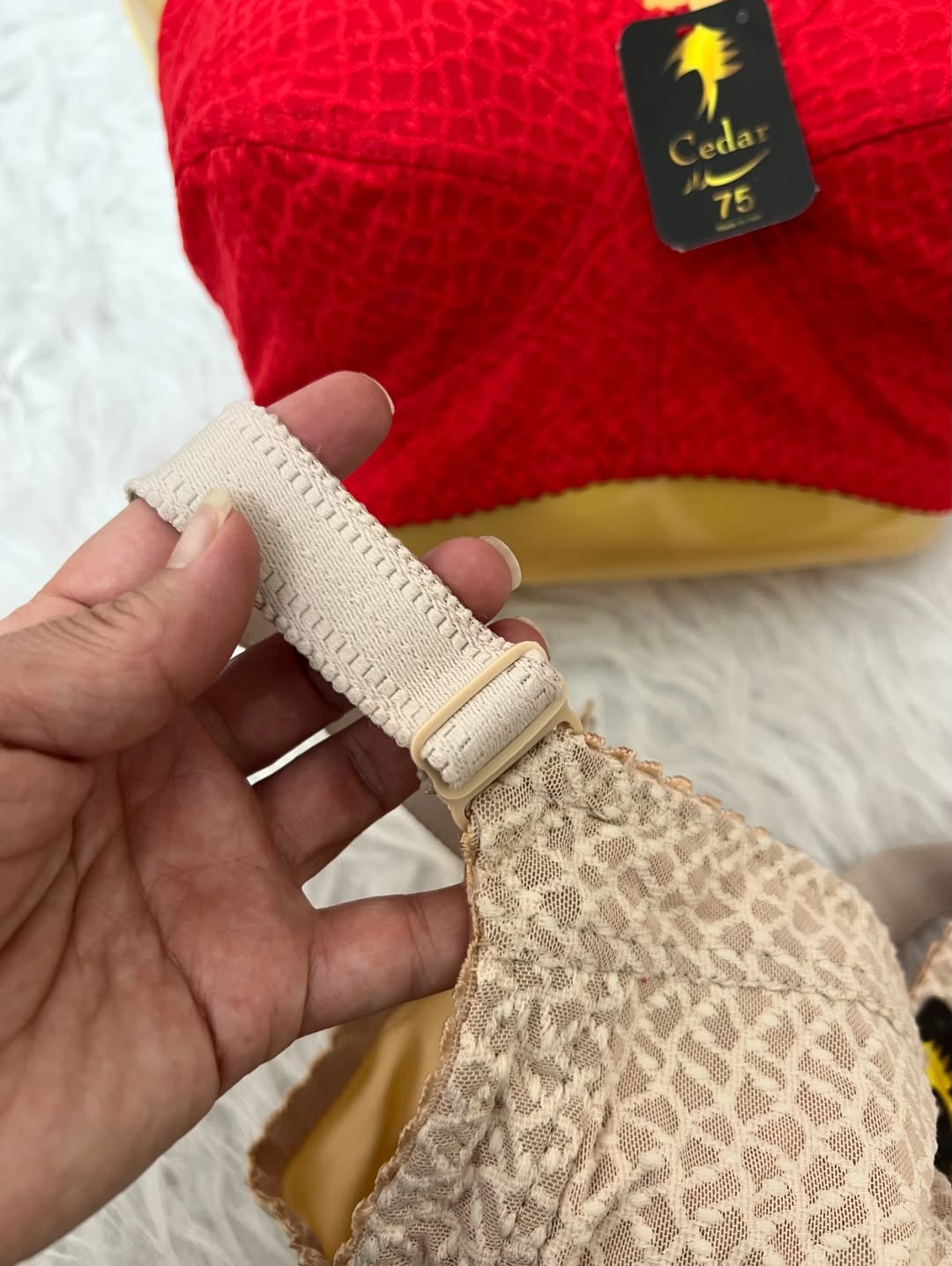 سوتین تمام دانتل زیرنخ داخل کار نخ، ضدحساسیت دارای رکاب پهن، کاملا خوش ایست با رنگبندی موجود در تصویر.بدون فنر سایزبندی استاندارد